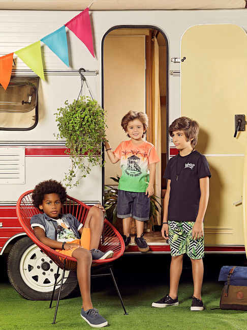 Each collection was divided into the First Steps (Primeiros Passos - PP) segment, for ages 1 to 4, and the Infant-Juvenile (IJ) segment, which corresponded to sizes 6 to 14. The PP segment was always designed with a more playful yet versatile dynamic, while the IJ segment was aimed at a younger audience, starting pre-adolescence.